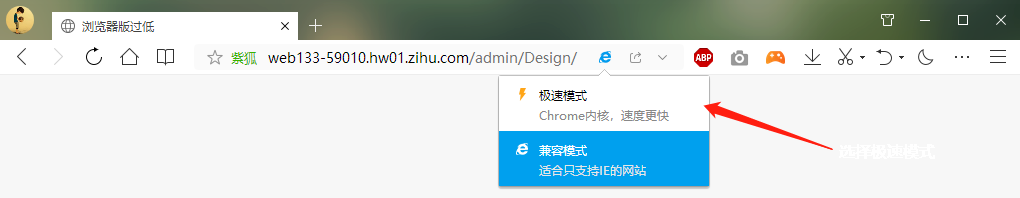 一、在浏览器的地址栏中找到如下图的图标,点击它,会弹出极速模式和兼容模式